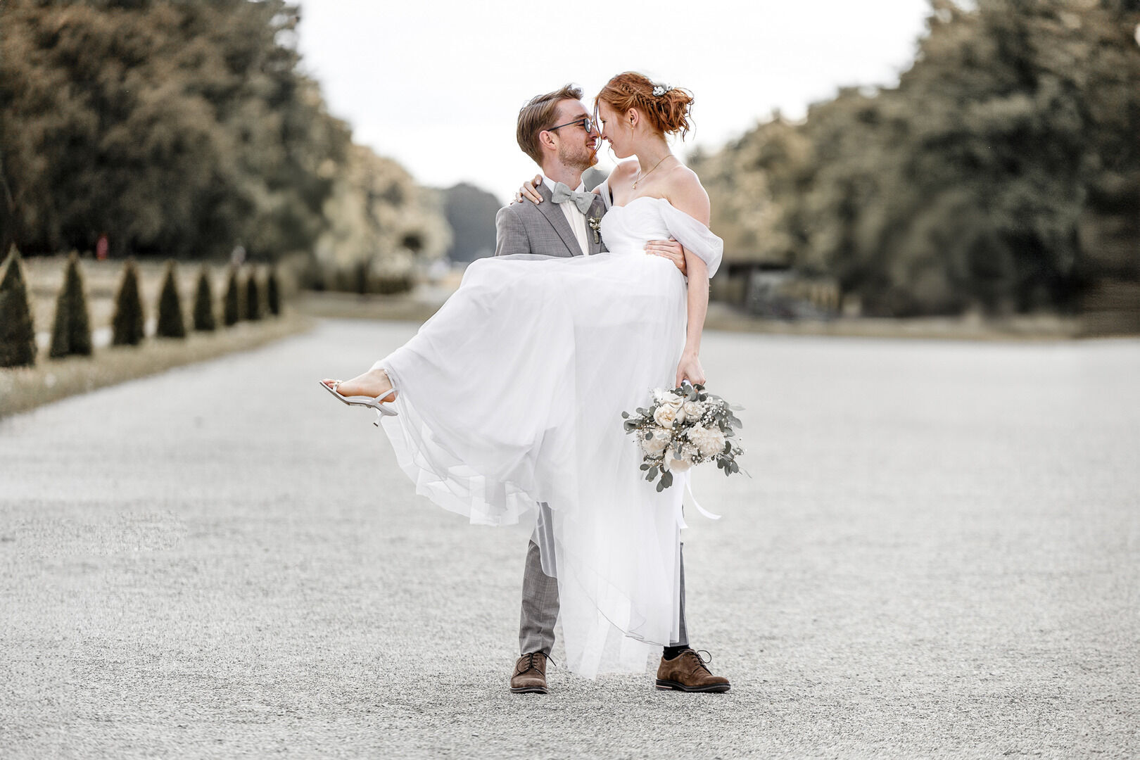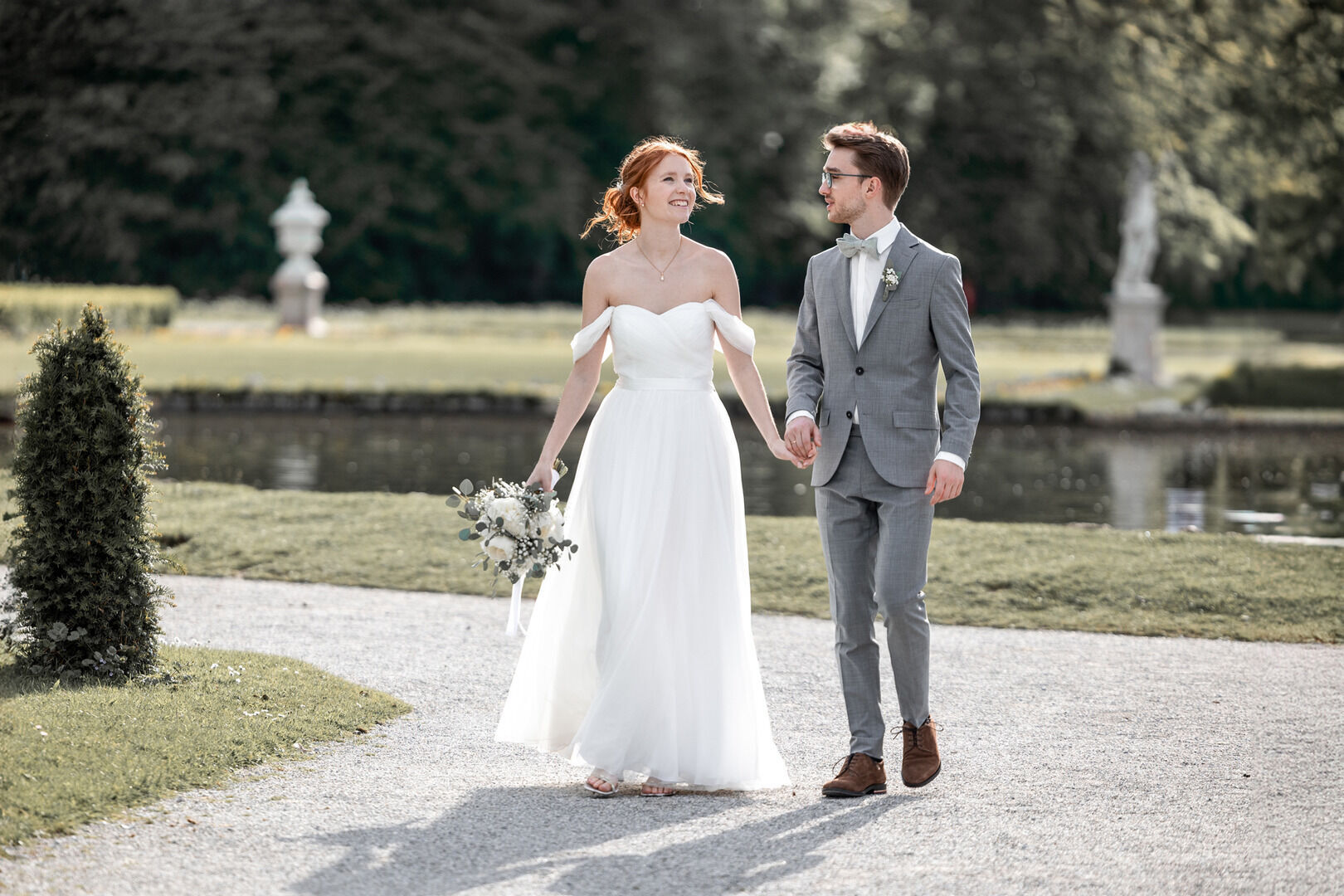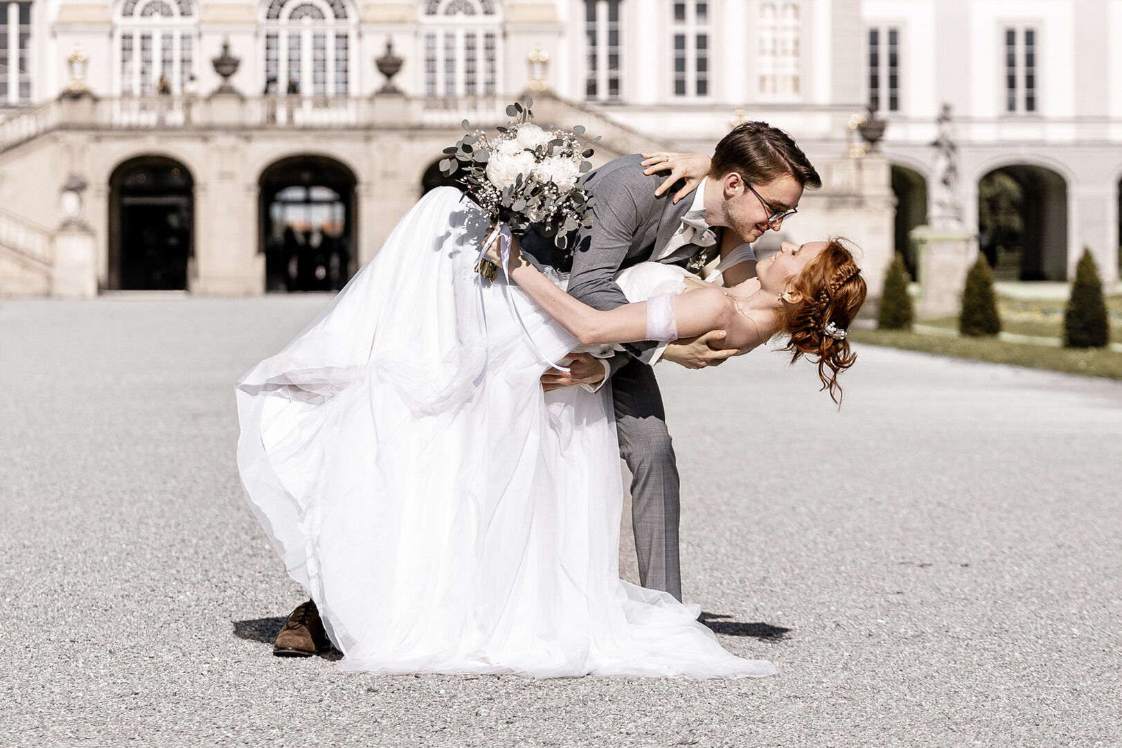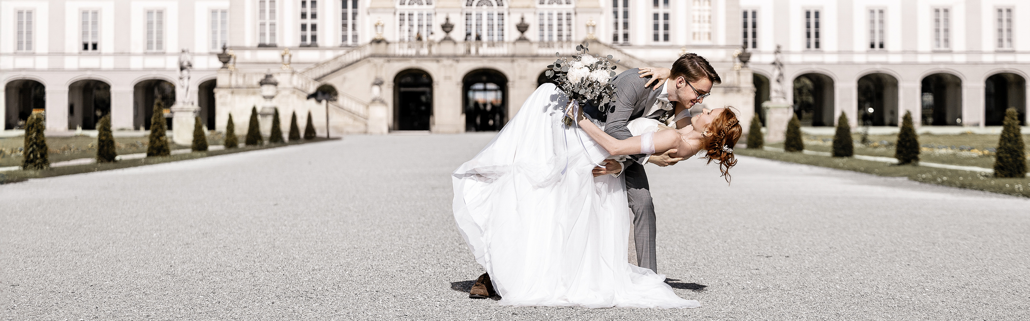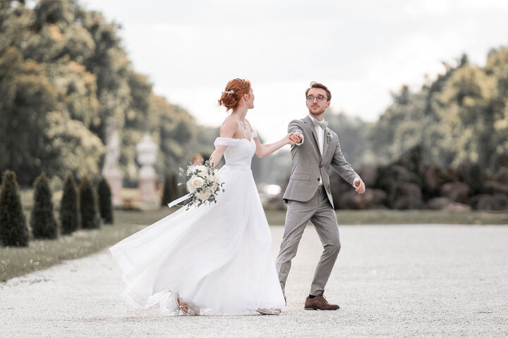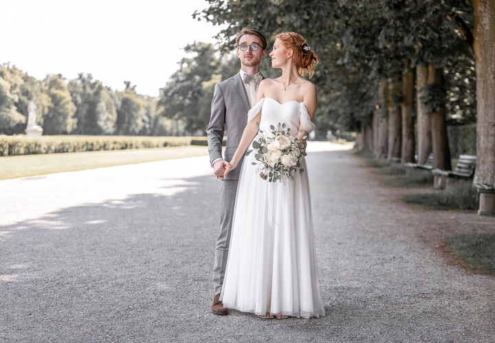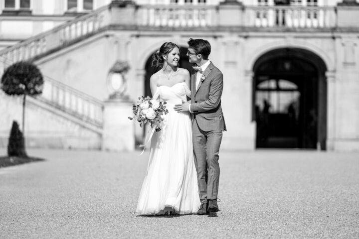 Im Anschluss ging es zum After-Wedding-Shooting in den Hof und Garten von Schloss Nymphenburg. Dort entstanden traumhafte Bilder, die ihr unten in der Galerie in farbe oder schwarzweiß sehen könnt. Die beiden haben sich für den "Moody - Bildlook" entschieden.