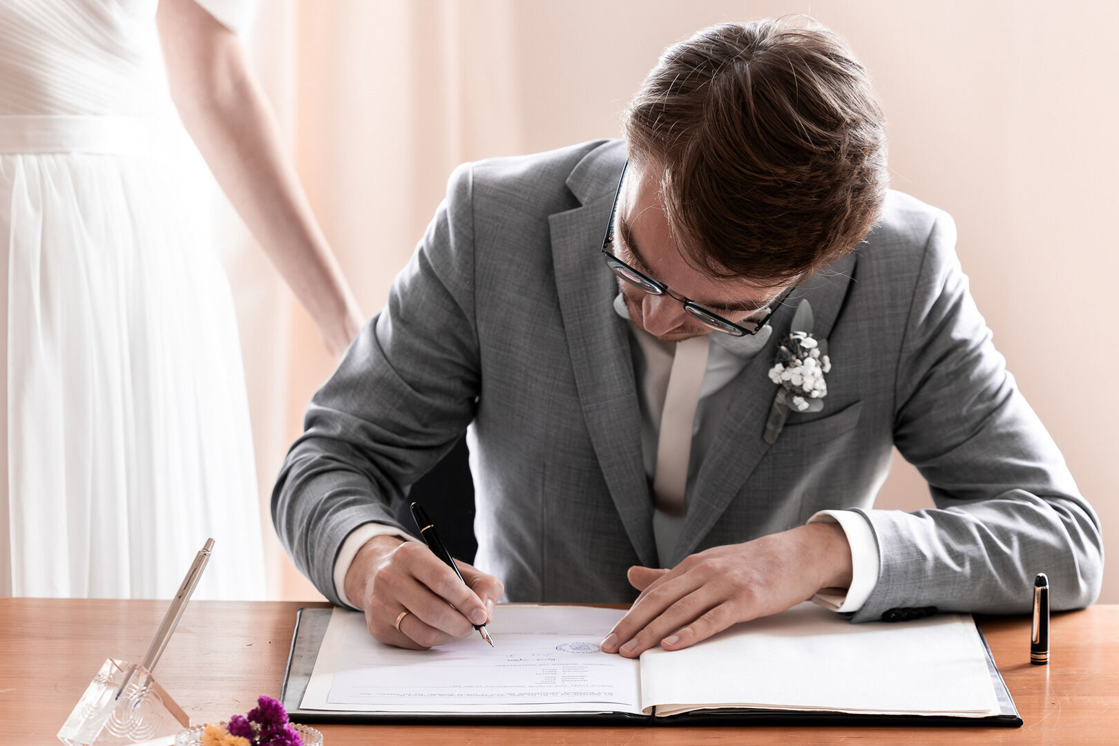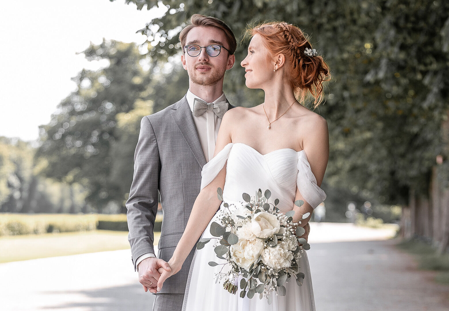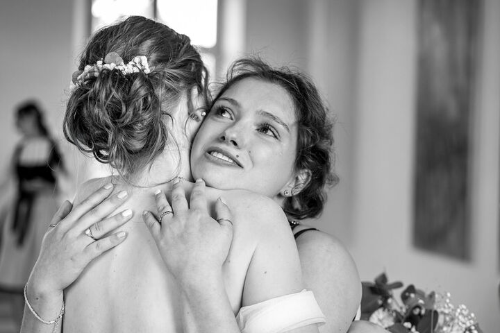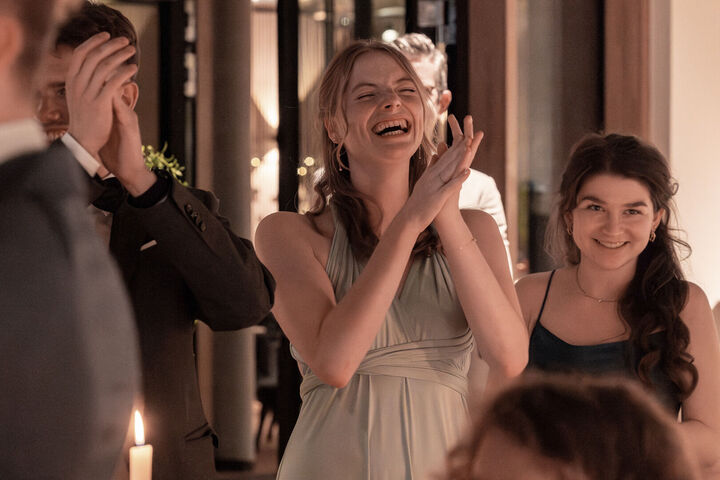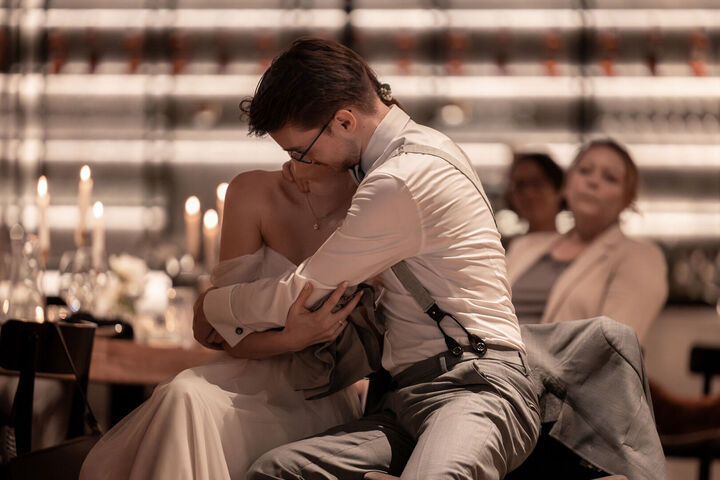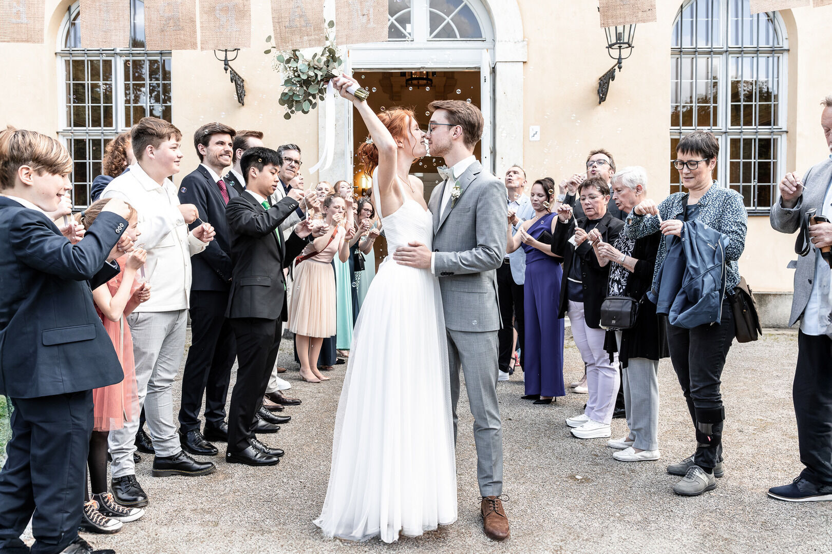 Als ich nach meinem Locationcheck im Hof des Schlosses die beiden sah, war ich sofort verzaubert. Merves Brautkleid war schlicht und modern, perfekt passend zur Braut, während Arne mit einem außergewöhnlichen Anzug glänzte. Die Liebe und Magie zwischen den beiden war sofort spürbar, besonders bei der Trauung, wo ich diese innigen und emotionalen Momente festhalten konnte.